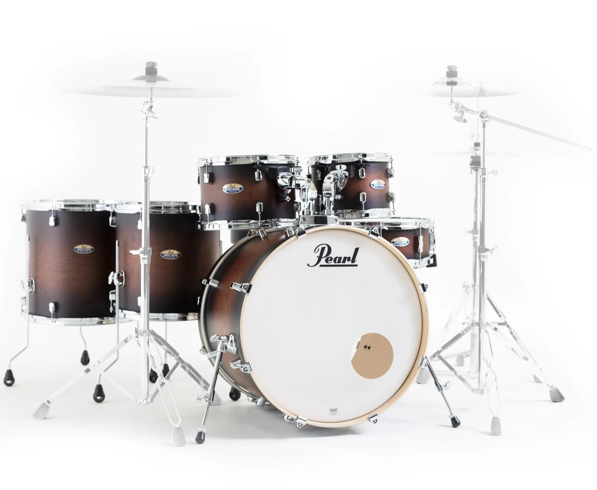 Ударна установка серії Decade Maple (2218B, 1008T, 1209T, 1616FT) з 6-ти шарове корпусами з клена (товщина корпусу - 5,4 мм). У комплекті набір стійок (педаль Demonator, похила стійка під тарілку, пряма стійка під тарілку, стійка хай-хет, стійка під малий барабан), дерев'яний малий барабан 14х5,5 ", система підвісу томів Opti-Lock, сталеві штамповані обода 1,6 мм, хромована фурнітура. Колір покриття - Satin Brown Burst. |