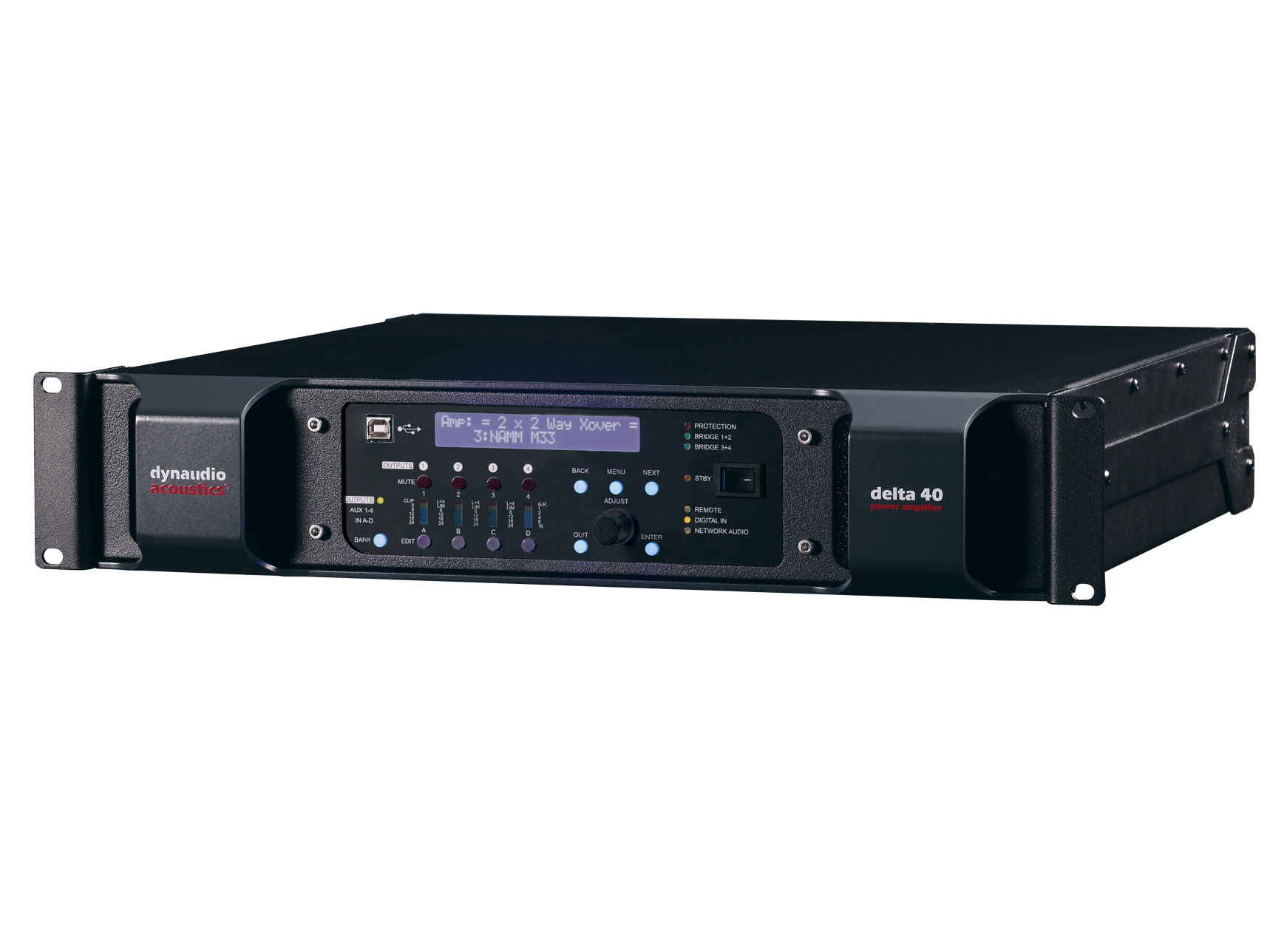 Delta 40 DSP. У кожній моделі використовується найвища якість технології підсилювача потужності, тому ви можете бути впевнені, що звук буде саме таким, як задумано. Тільки голосніше. 2U Delta 40 забезпечує величезну потужність 4x 1000 Вт на 4 Ом або 2x 2400 Вт при мостовому підключенні. І він робить це без жодних проблем, забезпечуючи при цьому надзвичайно низькі показники спотворень та шуму. Наприклад, коефіцієнт гармонійних спотворень становить <0,18% на частоті 1 кГц. Аналоговий сигнал чи AoIP через Dante? Delta 40 обробляє до чотирьох каналів; це система, орієнтована на майбутнє, яка може впоратися з будь-якими завданнями вашої студії. Під час використання Dante ваш звук перетворюється ЦАПами 24-біт/96 кГц. Якщо виникне потреба в налаштуванні кімнати, ви також отримаєте доступ до бездоганних функцій DSP. Вони охоплюють три динамічні та вісім статичних смуг еквалайзера на вхідний канал, а також дев'ять статичних смуг еквалайзера на вихід. Додайте до цього набір додаткових фільтрів. Ви також отримуєте бездр