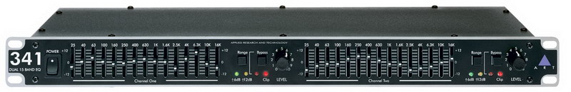 2-х канальний, 15-ти смуговий графічний еквалайзер, 1U, 2/3 октави, 20мм фейдери, PAD