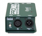 Radial SB-1 Active 5 160 грн. (є в наявності) Активний директ-бокс, спеціально розроблений для акустичних та електро гітар, забезпечує лінійну частотну характеристику від 20 Гц до 20 кГц, динамічний діапазон понад 100 дБ, спотворення менше ніж 0,005%, оснащений вхідним опором 800 кОм та вихідним 330 Ом, має вхідний роз'єм 1/4 дюйма та вихідний XLR, підтримує фантомне живлення 48 В, споживає 5 мА, оснащений атенюатором -15 дБ для зниження чутливості входу та інверсією фази на 180°, розміри складають 114 мм x 47 мм x 34 мм, вага 250 г.