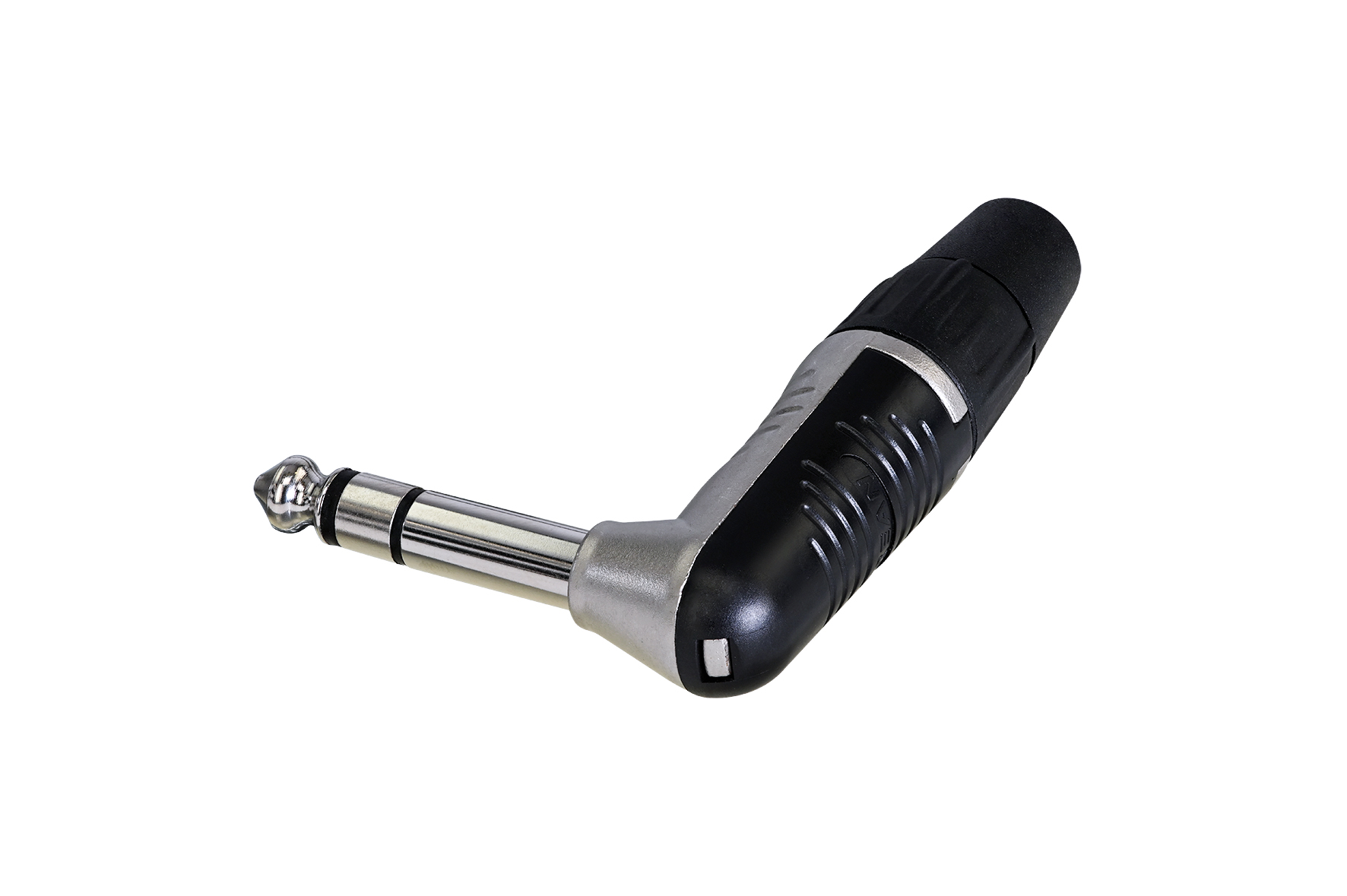 Кабельний роз'єм типу 1/4" джек-"тато" кутовий, 3-контактний, чорний корпус, позолочені контакти під пайку, пластиковий пакет.