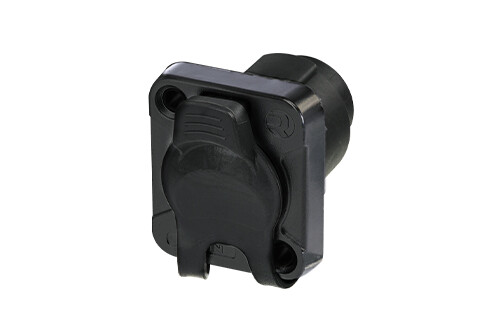 Панельний роз'єм XLR-"мама" 5-контактний, з замком, фланець типу D, гумова кришка, чорний корпус, позолочені контакти під пайку. Пластиковий пакет. В упаковці 100 шт.