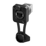 Панельний роз'єм etherCON типу RJ45 "мама" (гніздо) прохідний кутовий, з замком та кришкою, фланець типу "D", фронтальний монтаж. IP65. Стандарт CAT 5e, TIA/EIA 586B, IEC11801, PoE++ acc. IEEE 802.3bt. Міцний литий корпус зі сплаву ZnAl4Cu1, чорне хромування KTL (ударостійкий, вогнестійкий, стійкий до ультрафіолету). Повна повітронепроникність, вогнестійкість UL 94 V0, температурний режим -30 °C...+80 °C. В упаковці 100 шт.