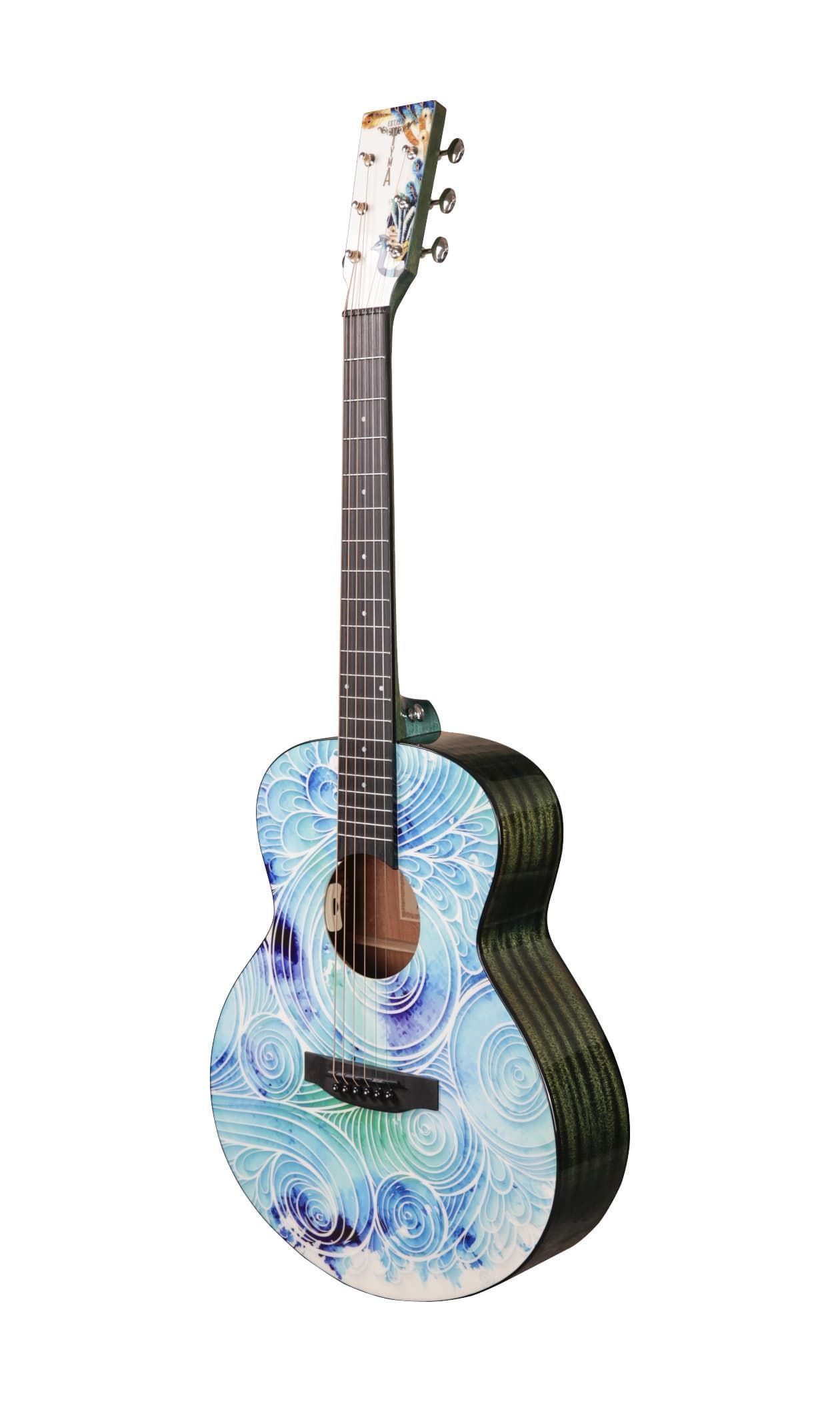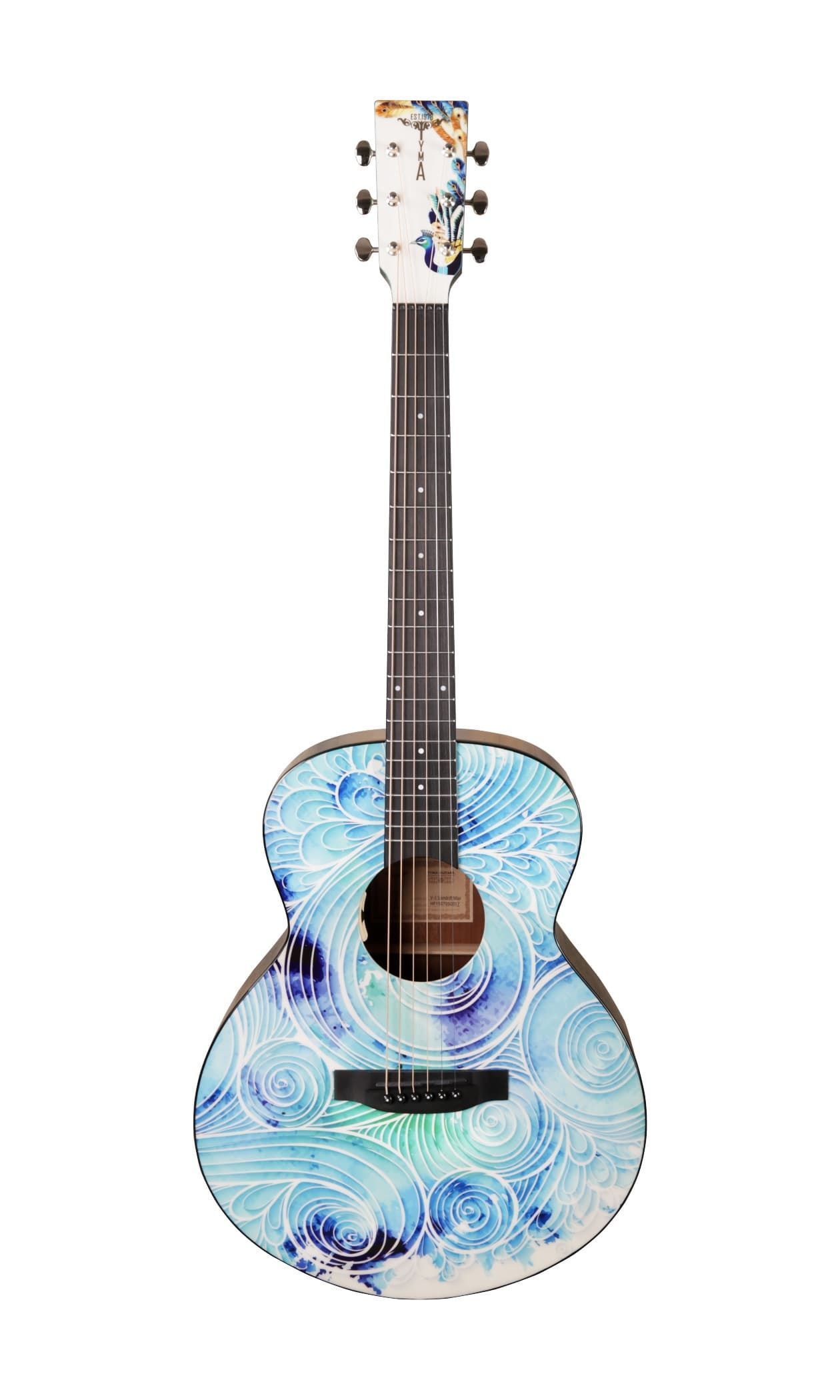 Електроакустична гітара. Форма - міні джамбо. Топ - цільний, ситхінська ялина. Задня дека та боковини - махагон. Гриф - африканський махагон. Брідж та накладка на гриф - штучний ебоні. Фініш - принт з малюнком. Електроніка - TYMA T-50. В комплекті - фірмовий гітарний чохол, ганчірка, ремінь.