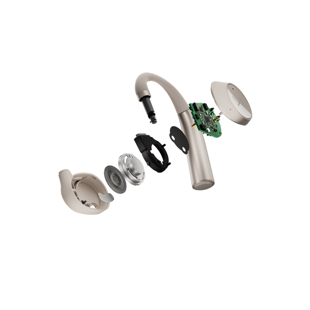 TWS гарнітура In-Ear відкритого типу з безпровідною технологією Bluetooth® 5.3 оснащена потужними драйверами та новітніми кодеками Qualcomm® aptX™ Adaptive та технологією AAC. Ідеальна ергономічна посадка та надлегкі матеріали забезпечують чудовий комфорт протягом усього дня. Відкритий звук і два чудові мікрофони з технологією Qualcomm® aptX™ Voice забезпечують вражаючу розбірливість мови. Легкий контроль та керування за допомогою сенсорних датчиків усіх індивідуальних налаштувань в фірмовому додатку. До 8-ми год автономної роботи на одному заряді плюс додаткові 27год із зарядним футляром. Сертифікований захист від бризок води та поту на рівні IP54. Частотний діапазон: 20 – 20000 Гц. Вага зарядного кейса: 98 г. Розміри зарядного кейса: 69.5x25x100 мм. Комплектація: навушники, USB-кабель, зарядний футляр. Колір – кремовий