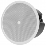 Двосмугова стельова акустична система, 6.5" НЧ динамік та 1" купольний ВЧ твітер. (100 В): 80 Вт, 40 Вт, 20 Вт, 10 Вт або 5 Вт, чутливість 89 дБ, максимальний рівень звукового тиску 114 дБ, частотний діапазон 70-20000 Гц, кут охоплення 130°. Колір білий RAL 9003