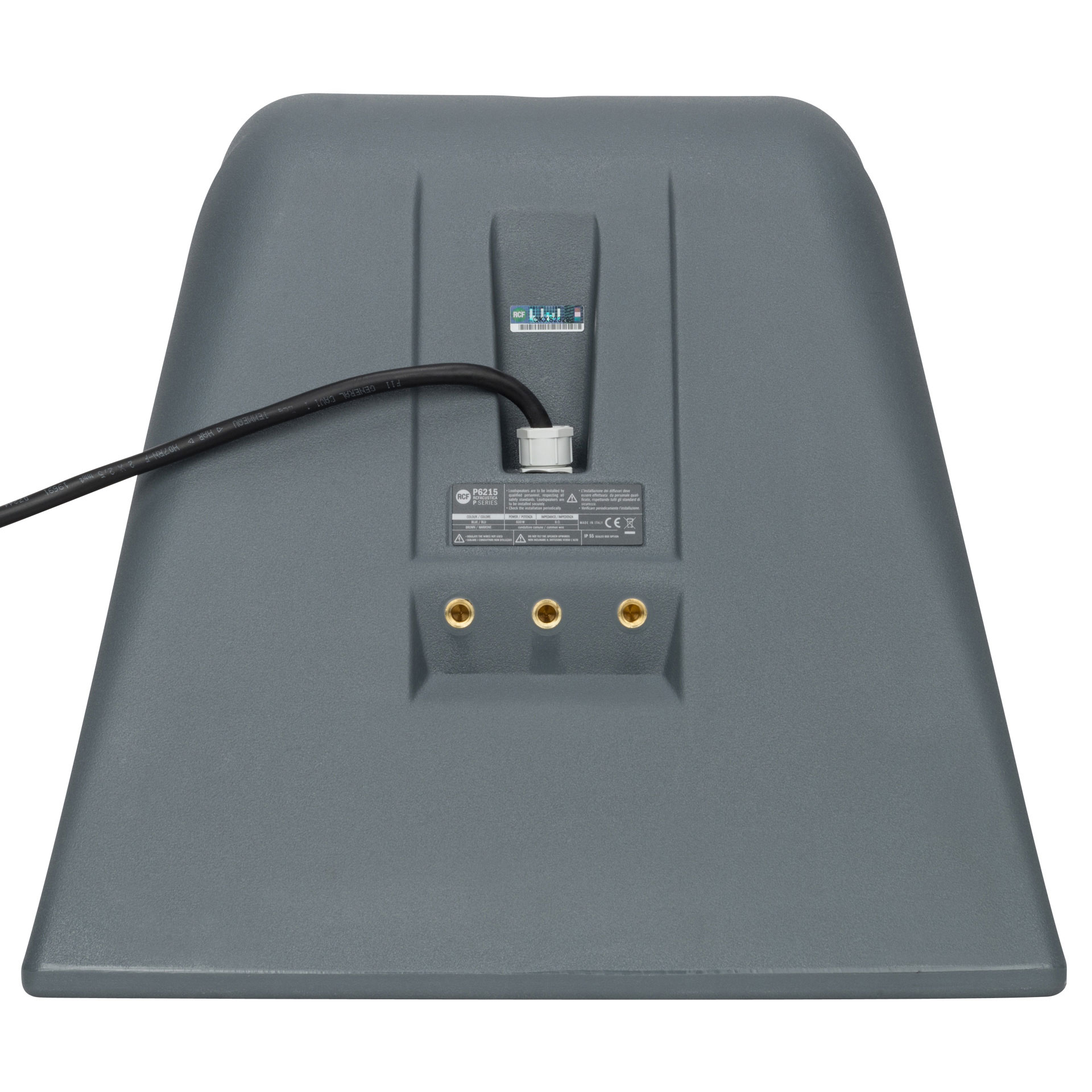 Двосмугова компактна акустична система, 3,5" НЧ + 1" ВЧ, 15 Вт, з лінійним трансформатором (вибір потужності (100 В): 15 Вт – 7,5 Вт – 5 Вт – 2,5 - 1,25 Вт). Чутливість: 87 дБ, IP55, чорний RAL 9005