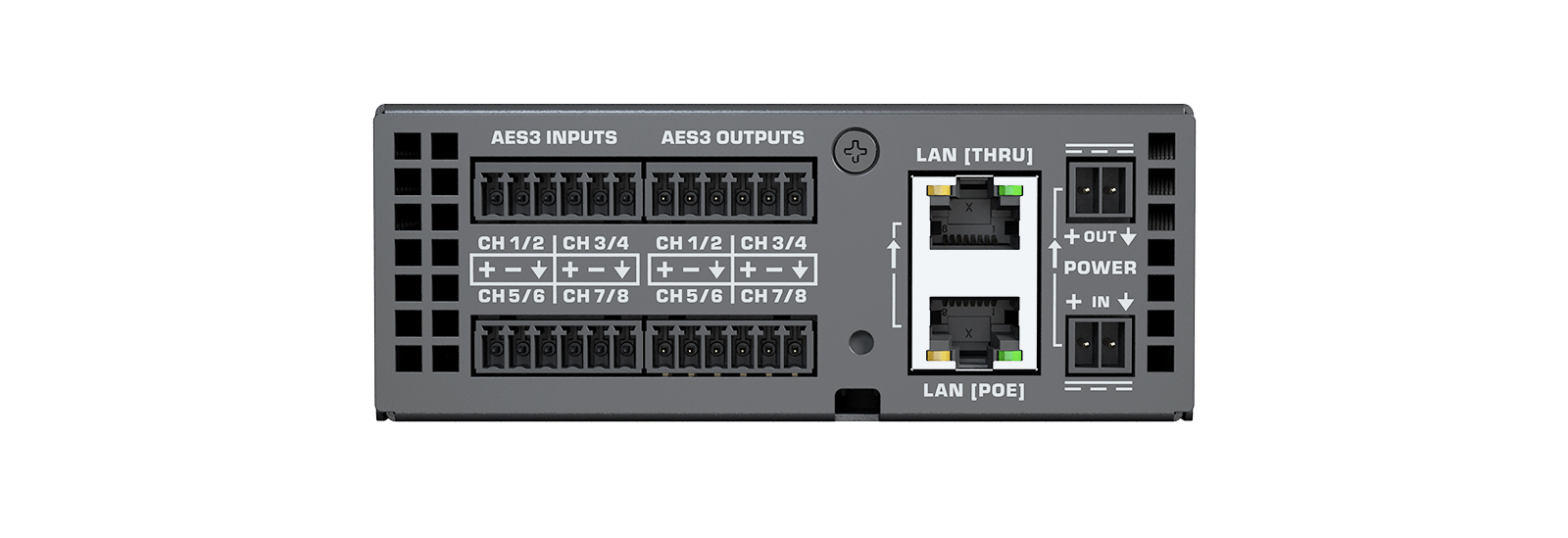 Периферійний пристрій Q-SYS, що забезпечує 8 каналів цифрового входу та виходу AES3. До 4 пристроїв з можливістю послідовного підключення. 1U-1/4W, живлення через Ethernet або +24 VDC. Можливий поверхневий монтаж, кріплення в рекову стійку продається окремо.