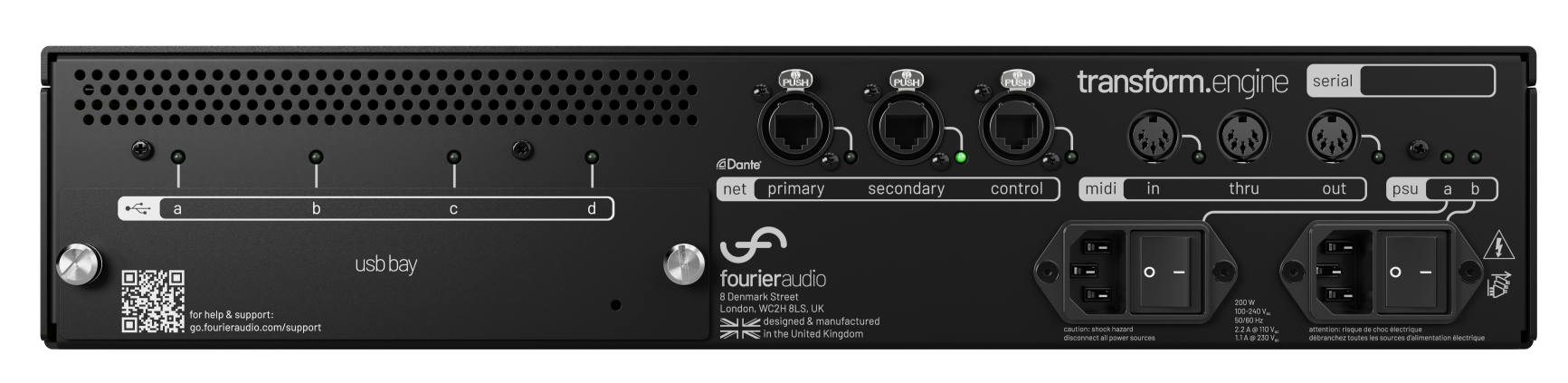 Transform.engine — це 2U Dante-сервер турового класу з подвійними резервними PSU. Він дозволяє використовувати плагіни VST3 для живого звуку та трансляцій в Windows, забезпечуючи обробку студійного рівня з наднизькою затримкою. Керується через клієнт віддаленого доступу Windows/macOS. Спрощує використання плагінів і ізолює їх для надійності. Він інтегрується в робочі процеси живого аудіо, включаючи консолі DiGiCo, і пропонує контроль над мережею з наднизькою затримкою. 2 Dante etherCON (основний / вторинний). 64-канальний вхід/вихід @ 44,1 кГц/48 кГц/96 кГц. 1 порт керування etherCON. 2 USB (передня панель), 4 USB (задня панель). 2 БЖ. MIDI. Розміри: 2U. 433 (ш) x 89 (в) x 385 (г) мм, Вага: 5,5 кг