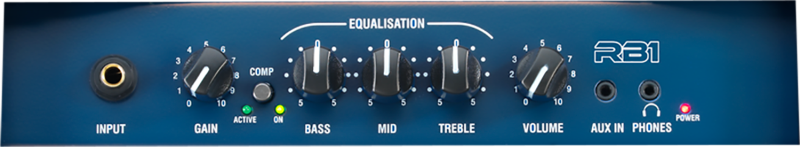 RB1 — це суперкомпактний басовий комбо із спеціально розробленим 8-дюймовим динаміком, але нехай це вас не введе в оману — він забезпечує потужні 15 Вт середньоквадратичної потужності міцного басу. Передпідсилювач має потужний трисмуговий еквалайзер і вбудований компресор. і внутрішній лімітер, а також міні-роз’єм для навушників і міні-вхід, що дозволяє підключати медіаплеєр для джему разом із вашими улюбленими треками.