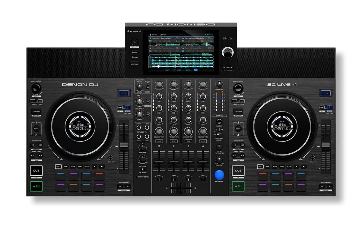 SC LIVE 4 — це 4-канальний автономний DJ-контролер із 7-дюймовим сенсорним дисплеєм, вбудованими динаміками та Wi-Fi. Цей all-in-one пристрій клубного рівня дарує діджеям максимальну свободу творчості та доступ до мільйонів треків через Amazon Music Unlimited.