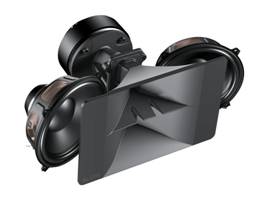 Трапециевидный корпус из березовой фанеры вмещает в себя две 6,5” неодимовые динамические головки и 3” компрессионный драйвер, нагруженный на специальный рупор, выполненный по технологии REM (эмуляция ленточного твиттера), имеющий минимальное искажение сигнала и постоянную направленность.