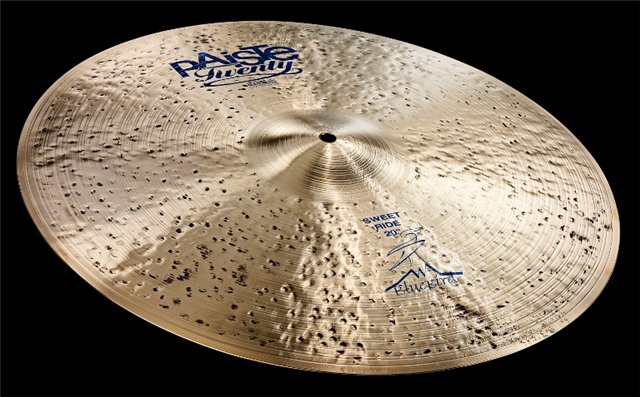 - Sweet Ride 20”. Эта модель разработана при содействии легендарного французского джазового барабанщика André “Dédé” Ceccarelli. Гладкий и звонкий пинг + мягкий и тёплый основной тон тарелки в идеале лучше всего подходит для работы в небольших бэндах. Как дань инспирации Dede, на тарелке отображен логотип Blue Bird.