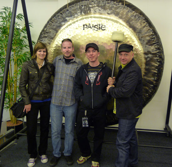 George Schwindt и группа FLOGGING MOLLY посетили фабрику Paiste. Незабываемые мелодии синтеза Кельтских инструментов с энергией Калифорнийского панк рока и безграничные по своей энергетике шоу делают каждое выступление группы FLOGGING MOLLY незабываемым. В настоящее время эта семерка выступает на нескольких крупнейших фестивалях Европы. После аншлага в Цюрихе, барабанщик George Schwindt, тур менеджер Aaron Glas, барабанный техник Christopher McCleary и фан группы Cinzia Leasi отправились в Nottwil чтобы посетить фабрику Paiste. Более чем пораженный профессионализмом и мастерством в течение фабричного тура, George не упустил возможность протестировать широкий диапазон хай хетов Paiste. Компания Paiste выражает благодарность за визит и желает удачи на предстоящих концертах.