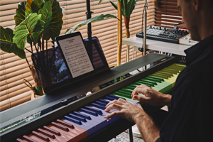 Під’єднайте смартфон або планшет без проводів та відтворюйте музику через вбудовані в інструменті динаміки. MPS1 M1 навіть може забезпечувати дистанційне керування передавальним пристроєм Bluetooth.