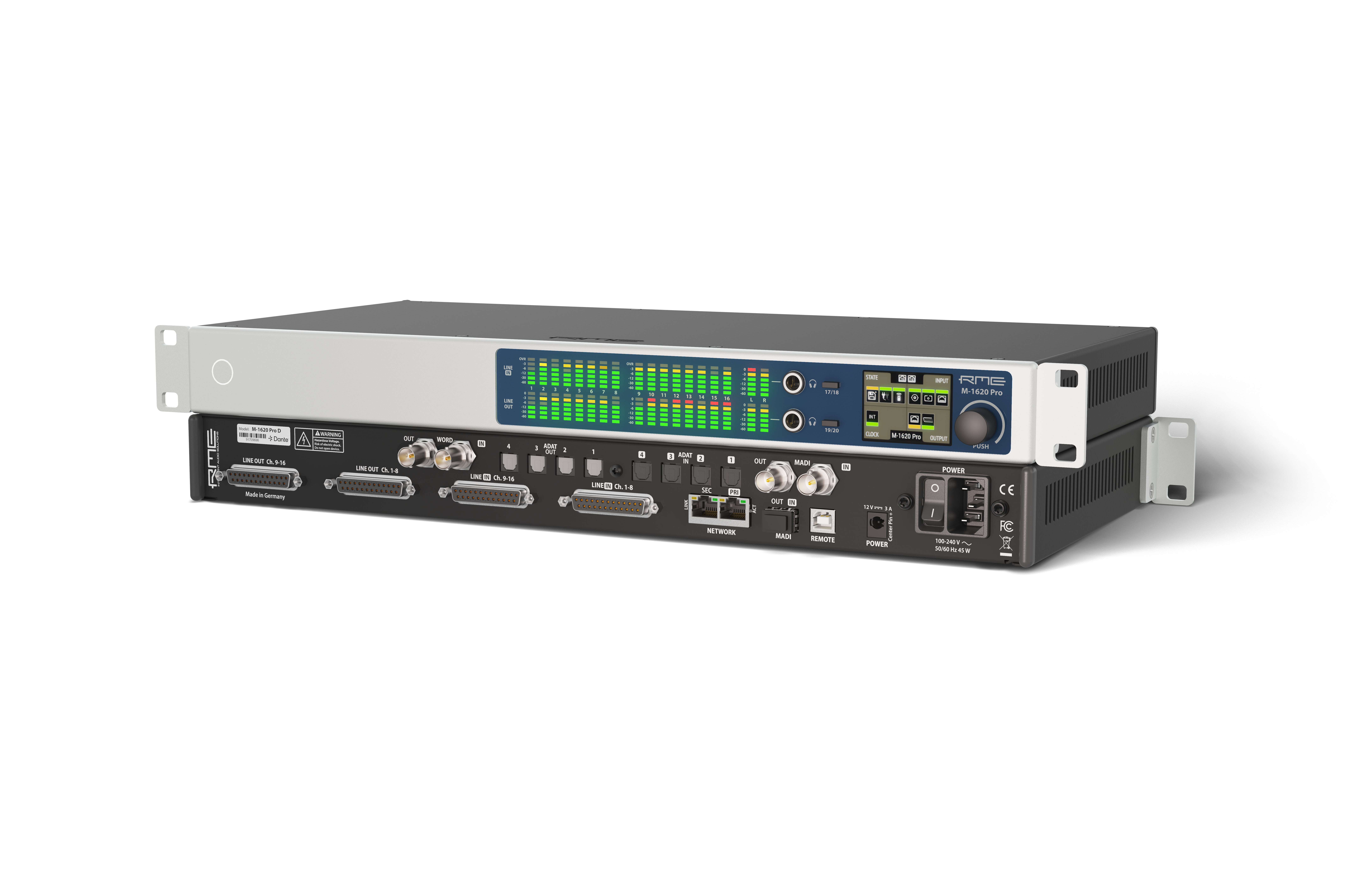 ![]() M-1620 Pro дозволяє конвертувати 16 аналогових лінійних аудіосигналів лінійного рівня в цифровий формат та навпаки. Джерелами можуть бути окремо коаксіальні та SFP-модулі MADI, ADAT або AVB (а у версії M-1620 Pro D — і Dante). Два виходи для навушників забезпечують якісний та зручний моніторинг. Усе поміщається в одноюнітовий рековий корпус, нова передня панель якого містить окремі індикатори рівнів та дисплей. Ці пристрої можуть стати корисним доповнення до інсталяцій імерсійного звуку та універсальним розширенням будь-якої аудіомережі. Для версії Dante два мережеві порти забезпечують резервоване або ланцюжкове з’єднання в одній мережі. На борту — роз’єми Word Clock BNC та коаксіальний MADI, а оптичний MADI можна додати за допомогою додаткового SFP-модуля, що ідеально підходить для задач з великою кількістю каналів із високою частотою дискретизації. Канали з обох MADI-портів можна індивідуально направляти до та з мережі AVB/Dante. Підтримка Dante забезпечує пряме підключення до інших аудіопристроїв в мережі за допомогою стандартних комутаторів, дозволяючи записувати/відтворювати до 64-х каналів на вашому комп’ютері на/з будь-якого аналогового або цифрового входу/виходу M-1620 за допомогою віртуальної звукової карти Dante Audinate™ (ліцензія не входить до комплекту). Моделі AVB передають та приймають до 128-ми каналів на частоті 48 кГц (96-ти на 96 кГц або 64-х на 192 кГц) з точно фіксованою затримкою по всій мережі. Статус і параметри налаштування доступні для кожного пристрою в мережі через ATDECC-контролери, що дозволяє інтегрувати його в системи з урахуванням часу за допомогою відкритого стандарту IEEE 1722.1. 2,54” TFT дисплей на передній панелі дає прямий доступ до всіх функцій та зручне керування всіма станами пристрою. Вбудована матриця маршрутизації дозволяє швидко направляти будь-які аналогові входи, а також усі цифрові сигнали та мережеві потоки прямо на вихід для навушників для простого і зрозумілого моніторингу та контролю. Підтримуючи до 36 аналогових каналів, входи/виходи ADAT і MADI та інтелектуальну маршрутизацію каналів, абсолютно нова серія M-1620 Pro пропонує найсучасніше рішення з винятковою якістю звуку та надзвичайною зручністю використання.